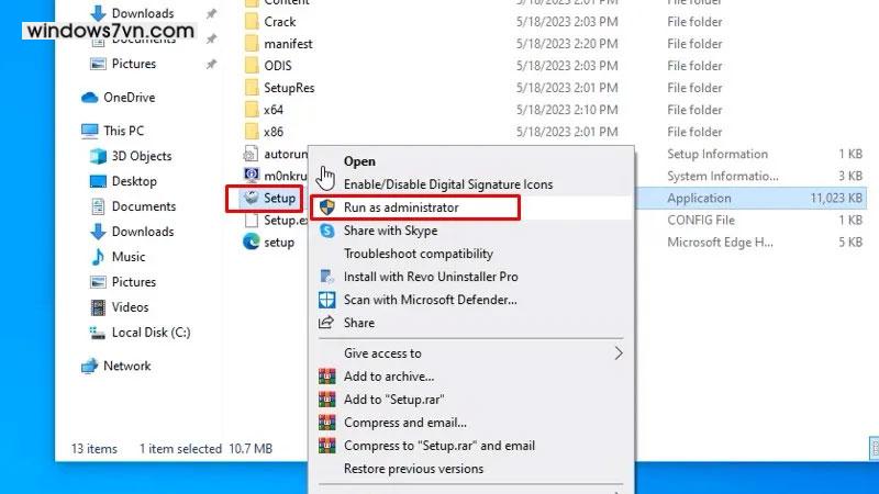 Bước 2: Chuột phải vào file Setup và chọn Run as admin
