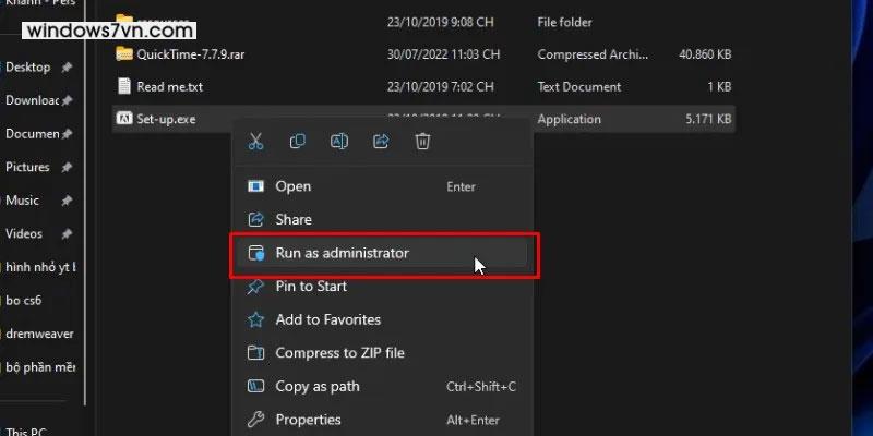 Bước 2: Chuột phải vào set up và chọn run as admin