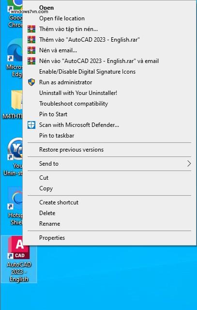 Bước 3: Nhấn chuột phải vào biểu tượng phần mềm AutoCAD 2023 trên màn hình, chọn Open File Location để mở thư mục cài đặt.