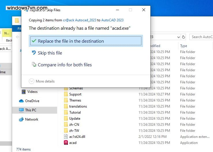 Bước 5: Chọn vào Replace the files the destination để xác nhận ghi đè