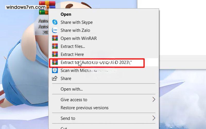 Bước 1: Giải nén file cài đặt AutoCAD 2023 từ tệp tải về.