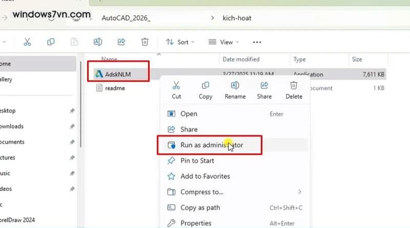 Bước 10: Chuột phải vào file AdskNLM => chọn Run as administrator => đợi quá trình chạy hoàn tất.