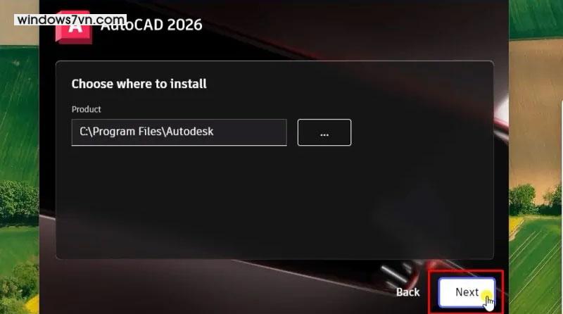 Bước 5: Tiếp tục nhấn Next để xác nhận vị trí cài đặt.