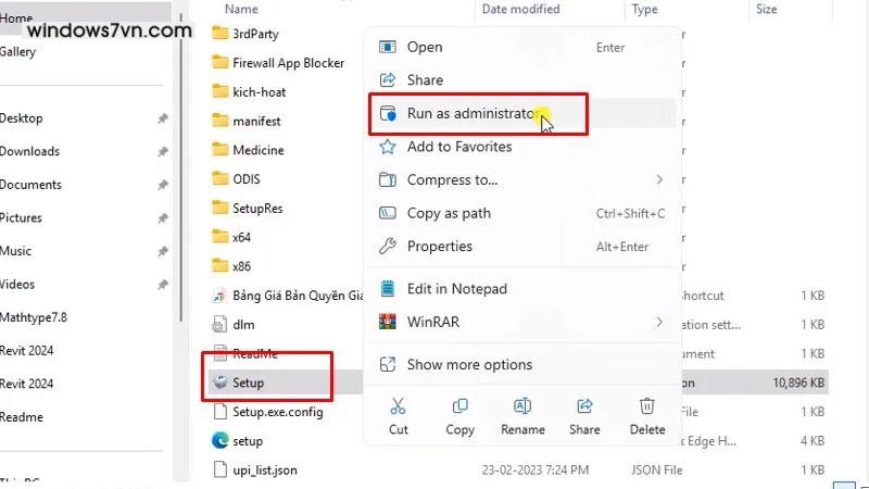 Bước 2: Chạy file cài đặt Setup bằng quyền Admin