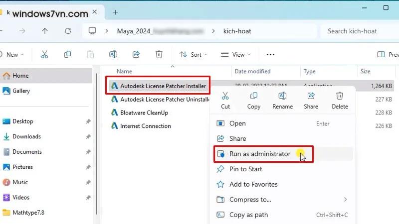 Bước 8: Chạy file Autodesk License Patcher Insaller bằng quyền Admin