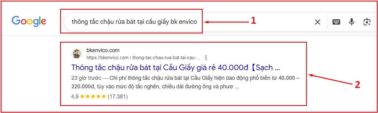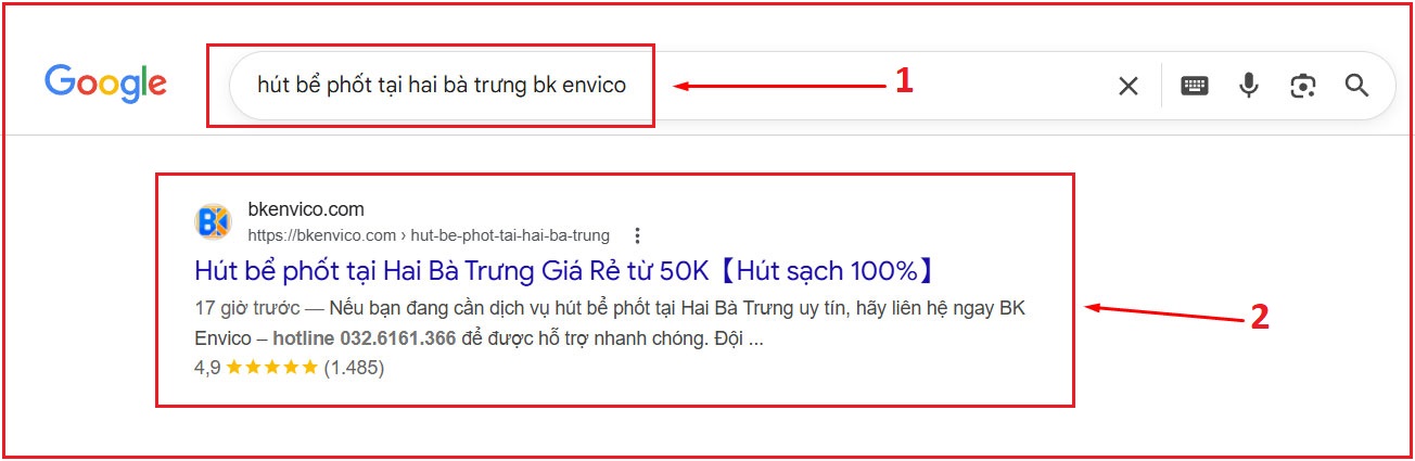 hút bể phốt tại hai bà trưng bk envicoBước 3: Tìm trang Bkenvico.*** và bấm vào kết quả giống hình bên dưới: