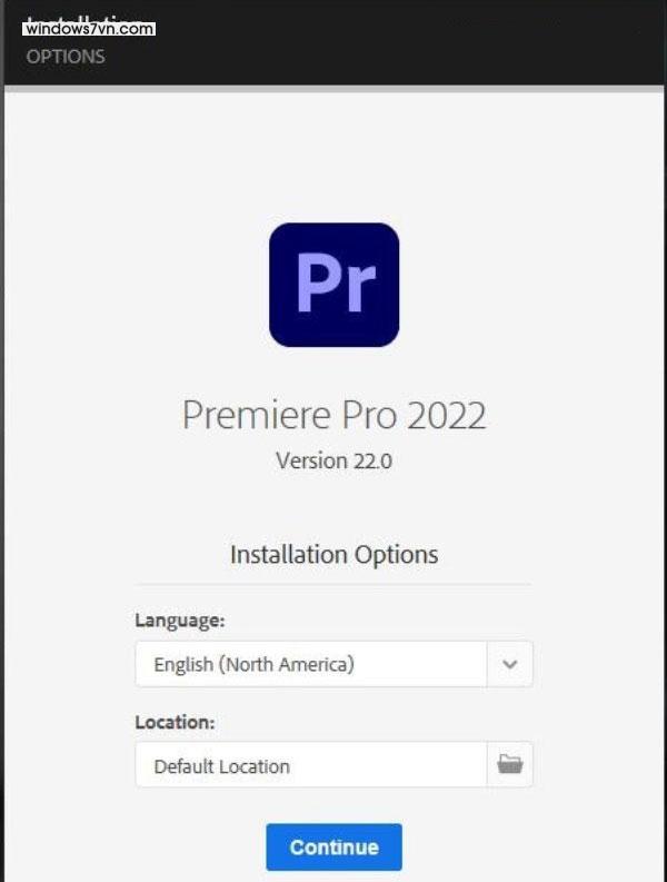 Bước 4. Khi màn hình hiển thị cửa sổ Premiere Pro 2022 Installer, bạn chọn Continue để tiếp tục.