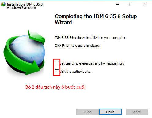 Bước 4: Hãy bỏ 2 dấu tích ở bước cuối rồi ấn Finish là hoàn thành xong