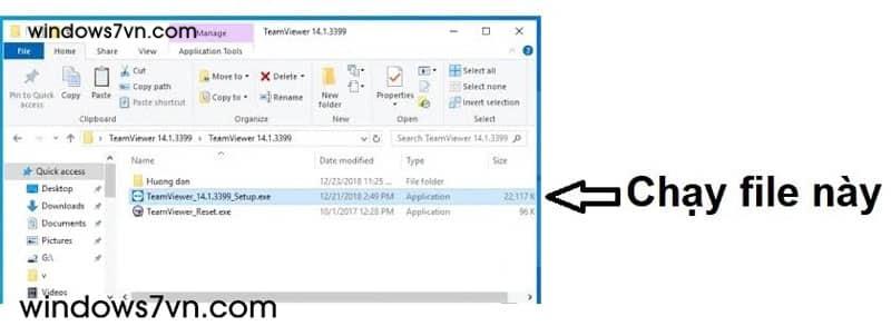 Bước 2: Truy cập vào thư mục giải nén và mở file cài đặt TeamViewer_Setup bằng cách nhấp đúp chuột vào nó.