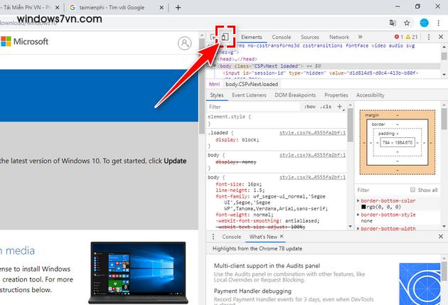 Bấm vào công cụ “Toggle device toolbar” nằm ở góc bên trái